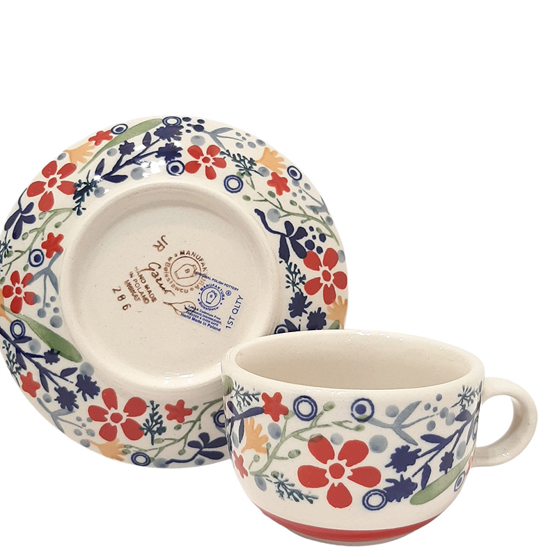 Чайная пара классического размера (0,2 л) создаст уютную атмосферу на вашей кухне во время чаепитий. Изделия расписываются вручную, каждая пара уникальна и неповторима. Долго сохраняет тепло напитка. Можно мыть в посудомоечной машине. Болеславская керамика устойчива к появлению царапин и сколов, поэтому чайная пара прослужит вам долго. Прекрасный подарок на любой праздник.