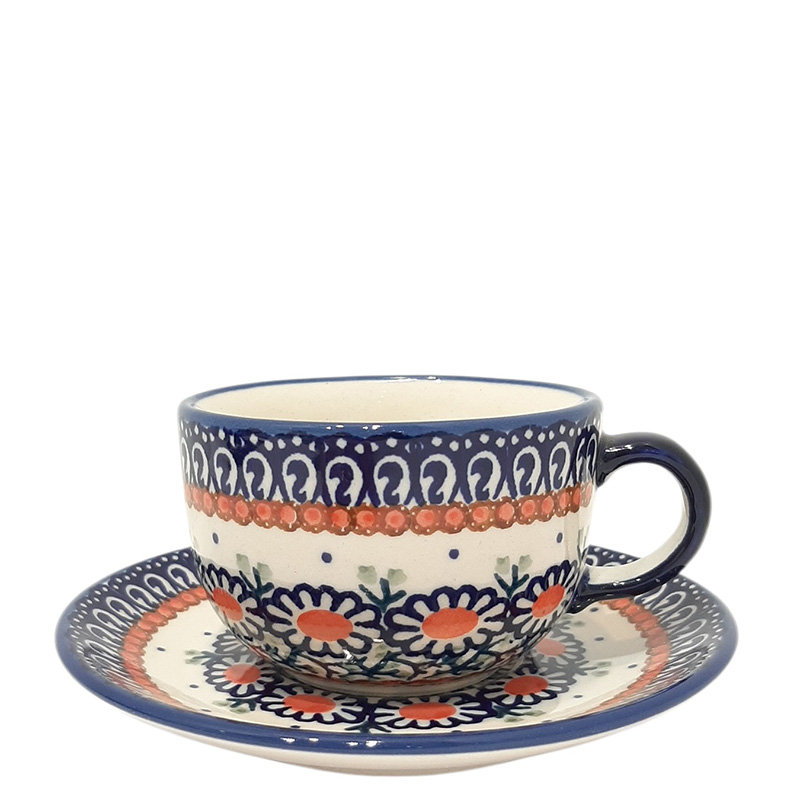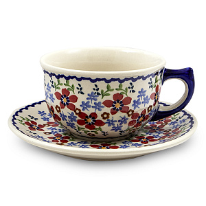 Чайная пара классического размера (0,2 л) создаст уютную атмосферу на вашей кухне во время чаепитий. Изделия расписываются вручную, каждая пара уникальна и неповторима. Долго сохраняет тепло напитка. Можно мыть в посудомоечной машине. Болеславская керамика устойчива к появлению царапин и сколов, поэтому чайная пара прослужит вам долго. Прекрасный подарок на любой праздник.