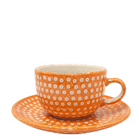 Чайная пара классического размера (0,2 л) создаст уютную атмосферу на вашей кухне во время чаепитий. Изделия расписываются вручную, каждая пара уникальна и неповторима. Долго сохраняет тепло напитка. Можно мыть в посудомоечной машине. Болеславская керамика устойчива к появлению царапин и сколов, поэтому чайная пара прослужит вам долго. Прекрасный подарок на любой праздник.