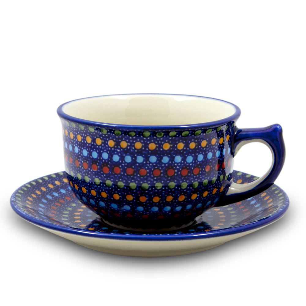 Большая чайная пара ручной работы незаменима для любителей больших порций чая или кофе. Отлично впишется в любой интерьер как городской, так и загородной кухни. Болеславская керамика очень прочна и устойчива к сколам, поэтому будет долго радовать своего обладателя. Можно использовать в посудомоечной машине и СВЧ. Станет приятным подарком для ваших близких.