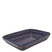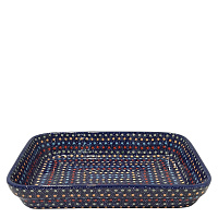 Прямоугольное блюдо. Может использоваться как сервировочное. Также может использоваться в духовке и микроволновой печи. Максимальная тем-ра 250С. Можно мыть в посудомоечной машине.