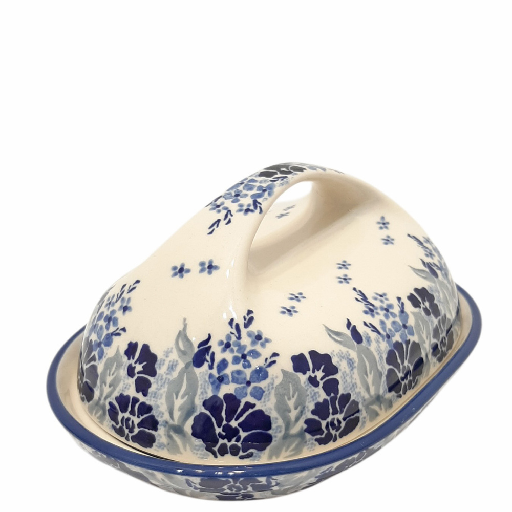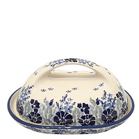 У этой масленки очень удобная ручка, а нижняя часть, выполнена в виде тарелочки. В масленку помещается стандартный брикет масла. Керамическая посуда обладает свойствами термоса, удерживая нужную температуру, и за счет этих свойств масленка прекрасно сохраняет сливочное масло и без холодильника.