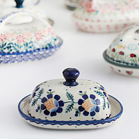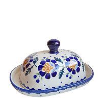 Маленькая масленка, примерно для половины "стандартной" (180 г) пачки масла. Не занимает много места в холодильнике, украшает стол, радует глаз.