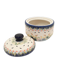 Сахарница изящной формы украсит ваш стол во время чаепитий. Сахар в посуде от "Птицы Синицы" не впитывает посторонние запахи и не боится влажности. В крышке предусмотрена выемка для ложечки.