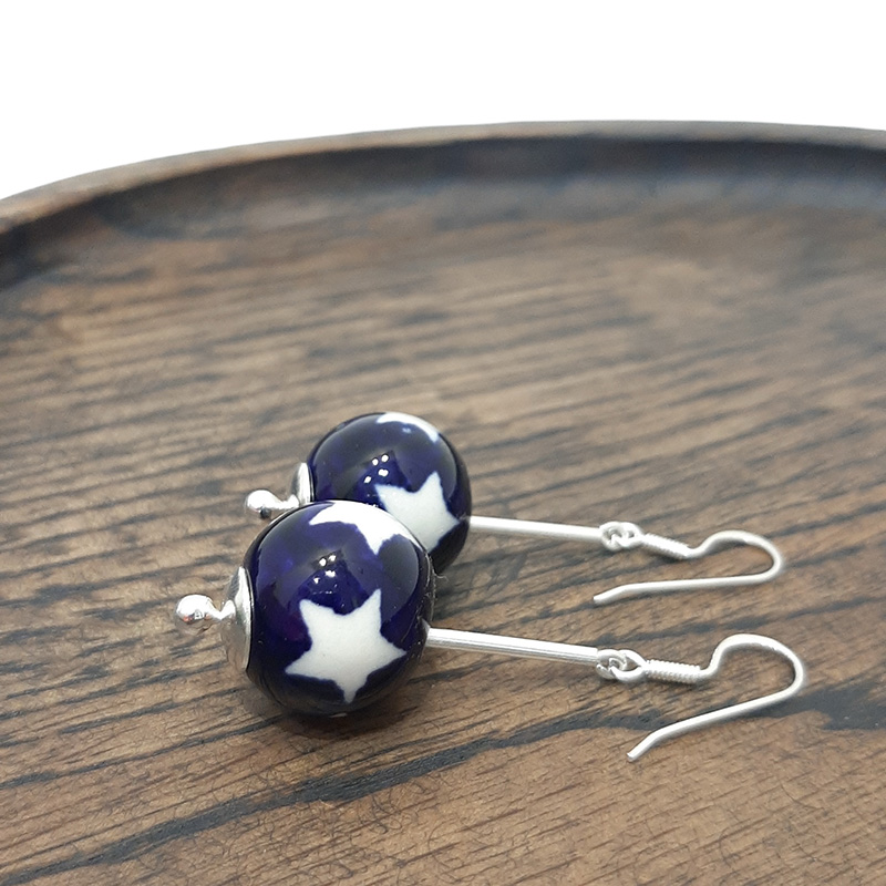 Изящные серьги с традиционной болеславской бусиной. Швензы выполнены из серебра 925 пробы.