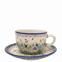 Чайная пара классического размера (0,2 л) создаст уютную атмосферу на вашей кухне во время чаепитий. Изделия расписываются вручную, каждая пара уникальна и неповторима. Долго сохраняет тепло напитка. Можно мыть в посудомоечной машине. Болеславская керамика устойчива к появлению царапин и сколов, поэтому чайная пара прослужит вам долго. Прекрасный подарок на любой праздник.