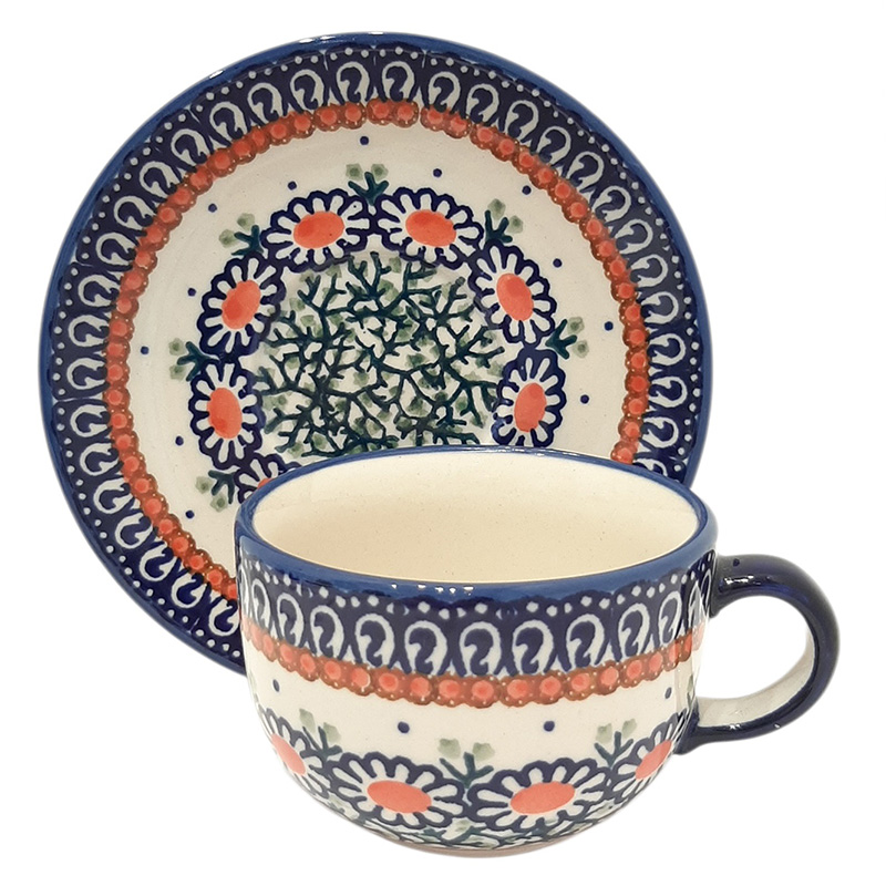 Чайная пара классического размера (0,2 л) создаст уютную атмосферу на вашей кухне во время чаепитий. Изделия расписываются вручную, каждая пара уникальна и неповторима. Долго сохраняет тепло напитка. Можно мыть в посудомоечной машине. Болеславская керамика устойчива к появлению царапин и сколов, поэтому чайная пара прослужит вам долго. Прекрасный подарок на любой праздник.