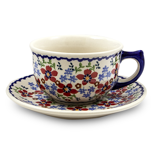 Большая чайная пара ручной работы незаменима для любителей больших порций чая или кофе. Отлично впишется в любой интерьер как городской, так и загородной кухни. Болеславская керамика очень прочна и устойчива к сколам, поэтому будет долго радовать своего обладателя. Можно использовать в посудомоечной машине и СВЧ. Станет приятным подарком для ваших близких.