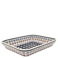 Прямоугольное блюдо. Может использоваться как сервировочное. Также может использоваться в духовке и микроволновой печи. Максимальная тем-ра 250С. Можно мыть в посудомоечной машине.