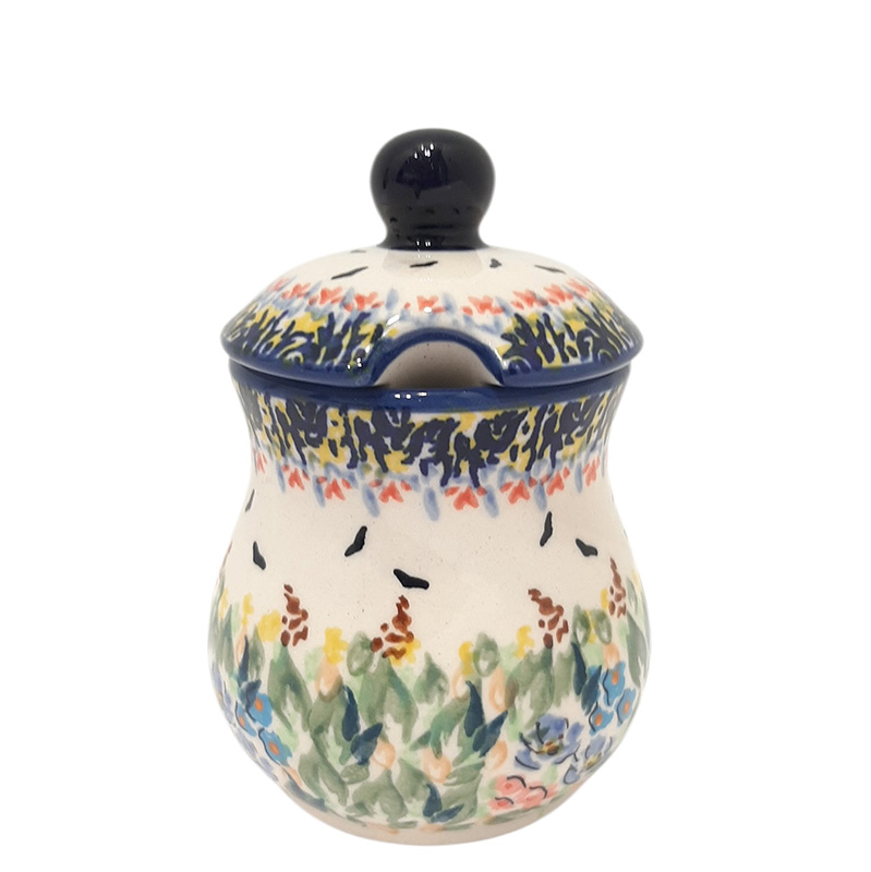 Маленкая баночка с крышкой. На крышке удобная выемка для ложки. Баночка подойдет для горчицы, джема и др. Милая вещица, украсит кухонный интерьер.