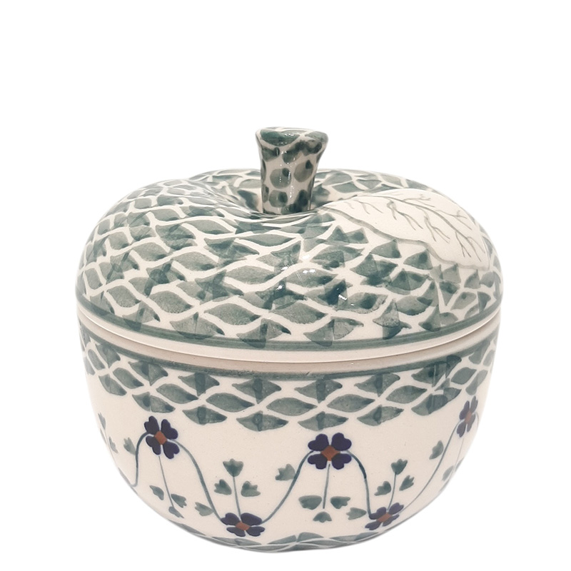 Небольшой контейнер в виде яблока, который можно ставить в духовку и использовать для запекания - в крышке есть отверстие для выхода пара. Можно использовать для хранения сыпучих продуктов и в качестве сахарницы или конфетницы.