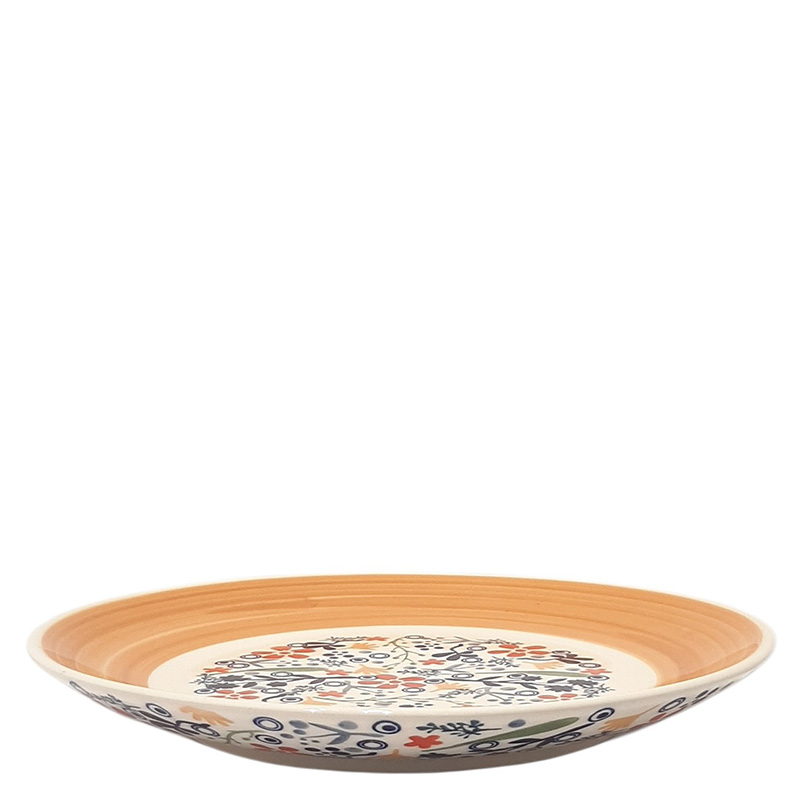Тарелка столовая. Сочетается с меньшей по размеру тарелкой T-134. В такой тарелке можно подать любое блюдо, а также можно повесить ее на стену для украшения интерьера. Можно мыть в посудомоечной машине и ставить в микроволновую печь.